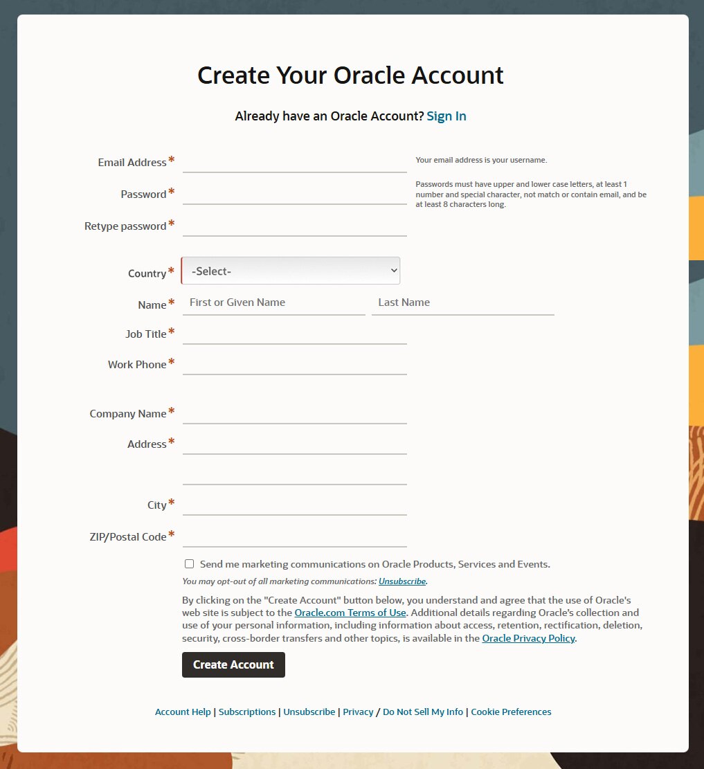 Navigate to the Oracle Account Creation page at Oracle | Create Account(opens in a new tab).