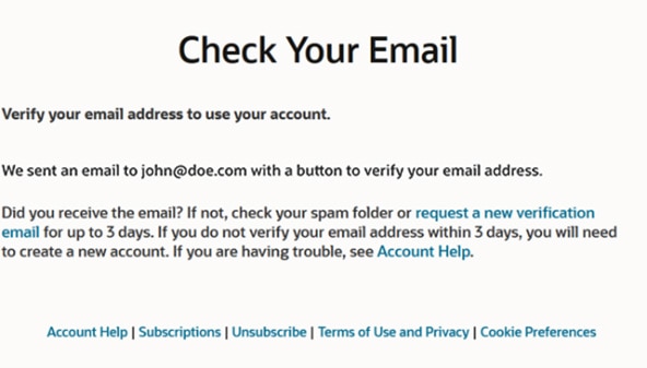 Check your email for a confirmation message from Oracle, and follow the instructions to verify your email address.