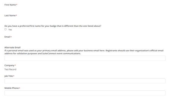 Once logged in you will be redirected to the registration page to complete your registration for SuiteConnect Dubai.