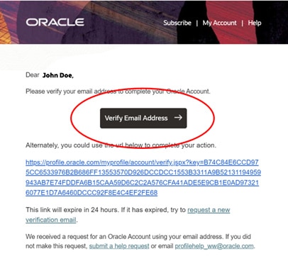 Check your email for a confirmation message from Oracle, and follow the instructions to verify your email address.
